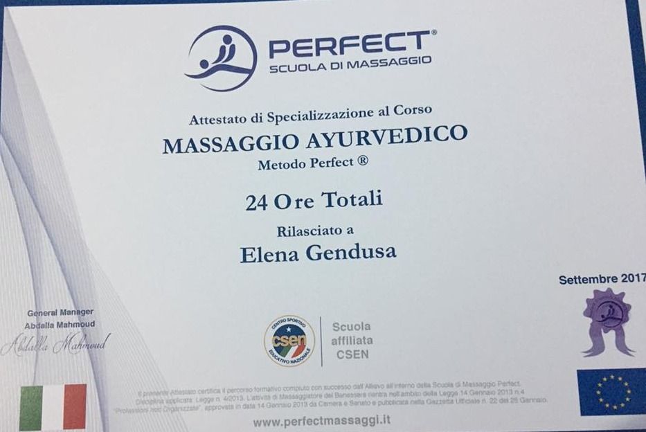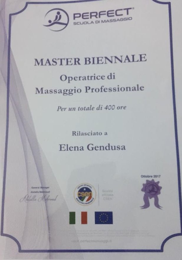 Ho studiato presso le università di Palermo, Roma e Napoli e successivamente mi sono specializzata in massoterapia a Trapani e aa Roma.